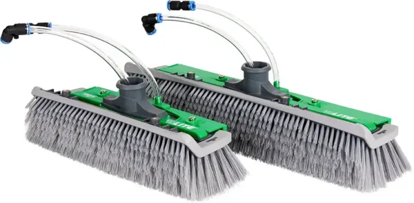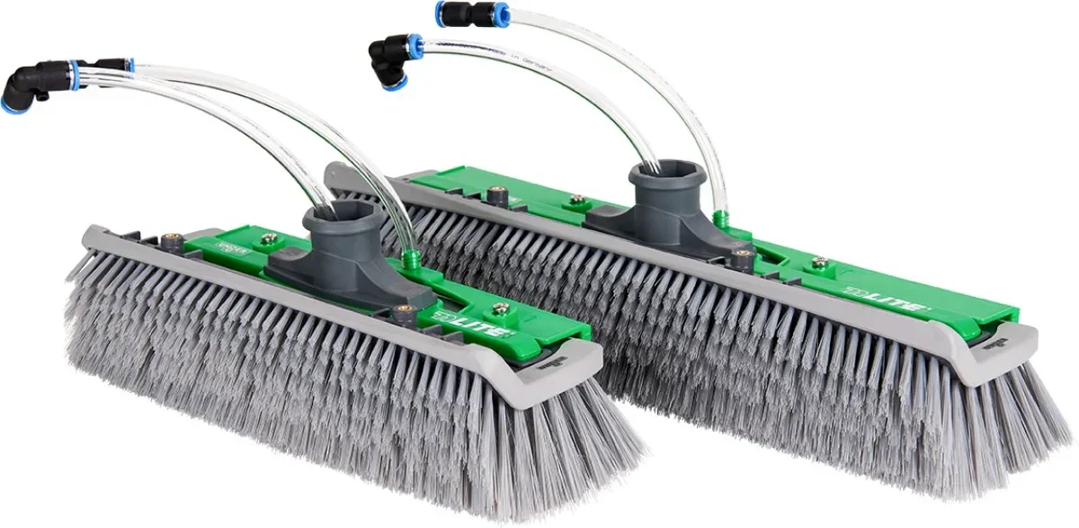 - Speciale strip (rinsebar) met sproei nozzles boven de borstel voor krachtig spoelen